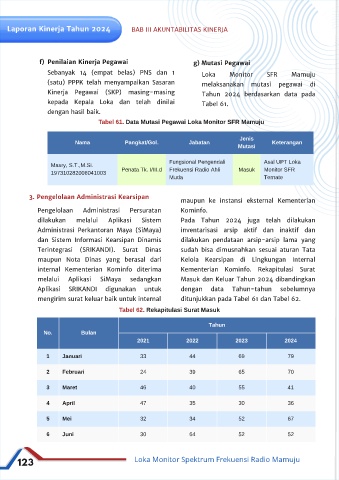 Tabel 61. Data Mutasi Pegawai Loka Monitor SFR Mamuju