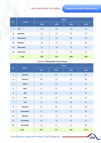 Tabel 63. Rekapitulasi Surat Keluar