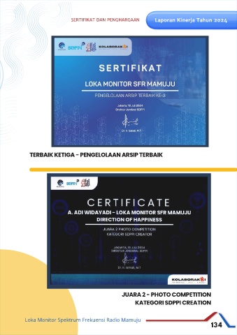 Laporan Kinerja Tahun 2024 SERTIFIKAT DAN PENGHARGAAN SERTIFIKAT DAN PENGHARGAAN Laporan Kinerja Tahun 2024
