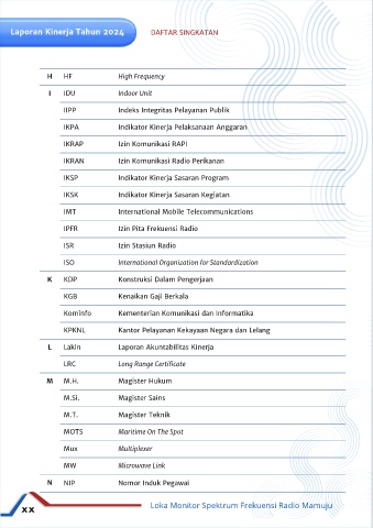 Laporan Kinerja Tahun 2024 DAFTAR SINGKATAN DAFTAR SINGKATAN Laporan Kinerja Tahun 2024
