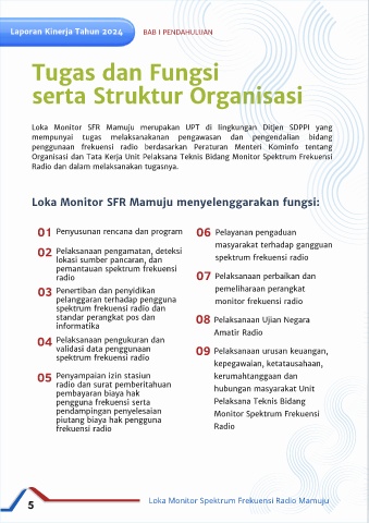 Loka Monitor SFR Mamuju merupakan UPT di lingkungan Ditjen SDPPI yang a. Melakukan perencanaan dan program, urusan keuangan, kepegawaian, ketatausahaan,