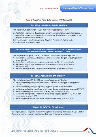 Tugas dan Fungsi Tabel 1. Tugas Tim Kerja Loka Monitor SFR Mamuju 2024