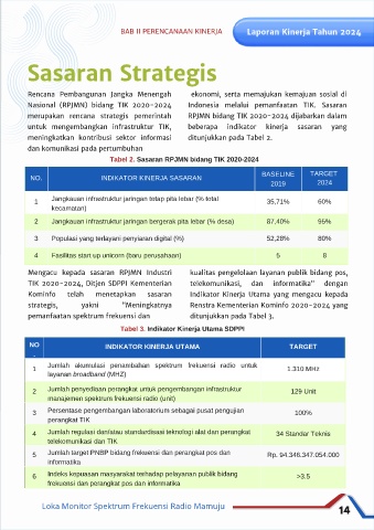 Nasional (RPJMN) bidang TIK 2020-2024 Indonesia melalui pemanfaatan TIK. Sasaran