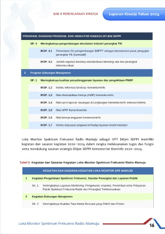 kualitas pelayanan publik Tabel 5. Kegiatan dan Sasaran Kegiatan Loka Monitor Spektrum Frekuensi Radio Mamuju