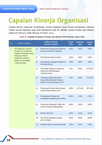 Tabel 10. Capaian Perjanjian Kinerja Loka Monitor SFR Mamuju Tahun 2024