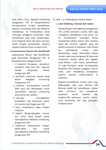 4. Inovasi/Analisa dan Dampak Keberhasilan pendukung lainnya, penerapan budaya Pada Tahun 2024, Kegiatan monitoring B. IKSK. 1.2. Pemeriksaan Stasiun Radio