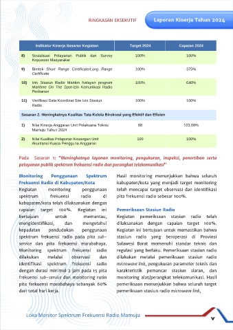 5) Terjaganya operasional dan fungsi monitoring 95% 105,26% Monitoring spektrum frekuensi radio regulasi yang berlaku. Pemeriksaan stasiun radio