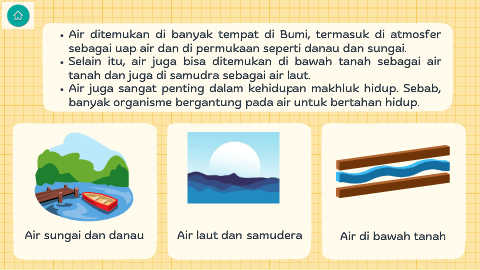 sebagai uap air dan di permukaan seperti danau dan sungai.