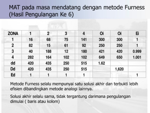 Metode Furness selalu mempunyai satu solusi akhir dan terbukti lebih