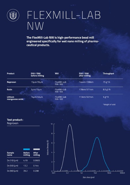 Naproxen 13µm/39µm FlexMill-Lab 144nm /298 nm 75 g*/h