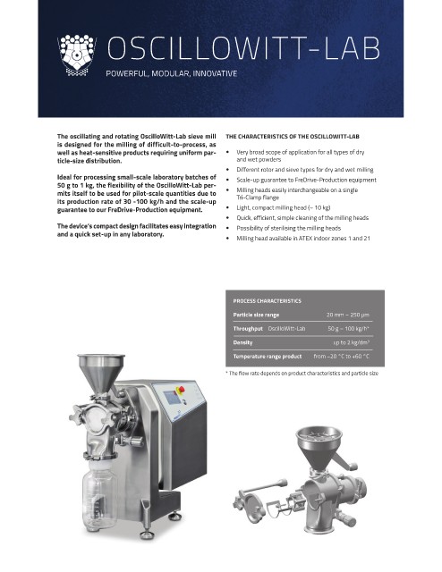 The oscillating and rotating OscilloWitt-Lab sieve mill THE CHARACTERISTICS OF THE OSCILLOWITT-LAB