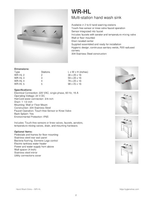Hand Wash Sinks – WR-HL https:hygienehec.com