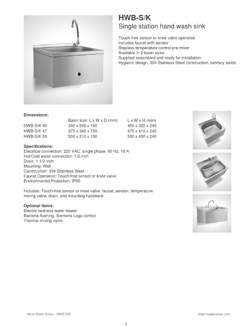 Hand Wash Sinks – HWB S/K https:hygienehec.com