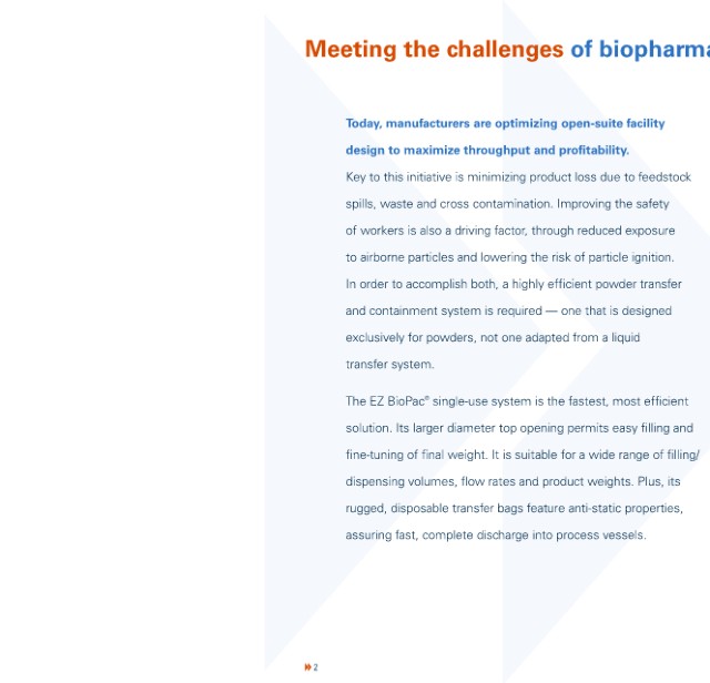 dispensing volumes, flow rates and product weights. Plus, its EZ BioPac ® 2D Transfer Bag
