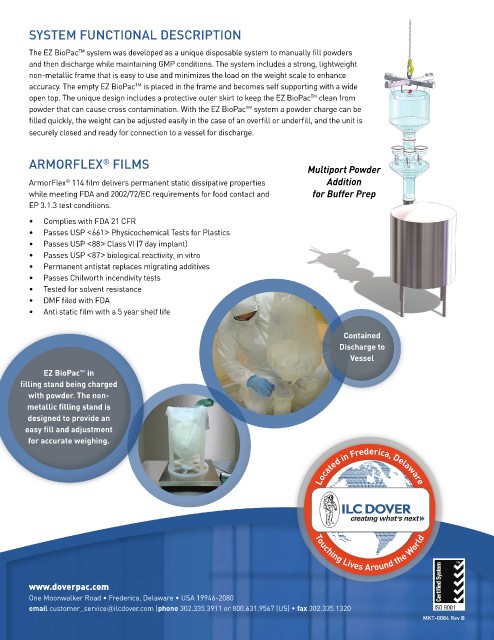 and then discharge while maintaining GMP conditions. The system includes a strong, lightweight