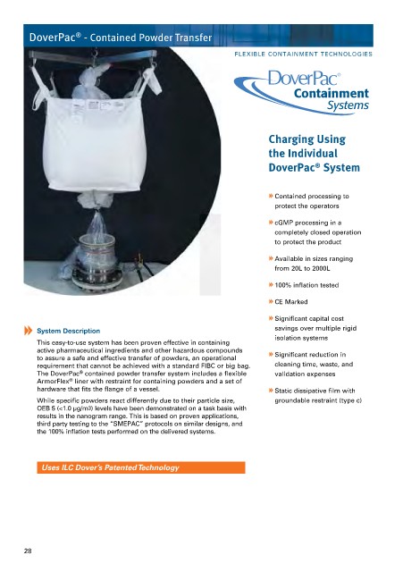 The DoverPac contained powder transfer system includes a flexible validation expenses