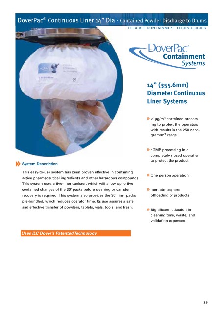 DoverPac Continuous Liner 14” Dia - Contained Powder Discharge to Drums