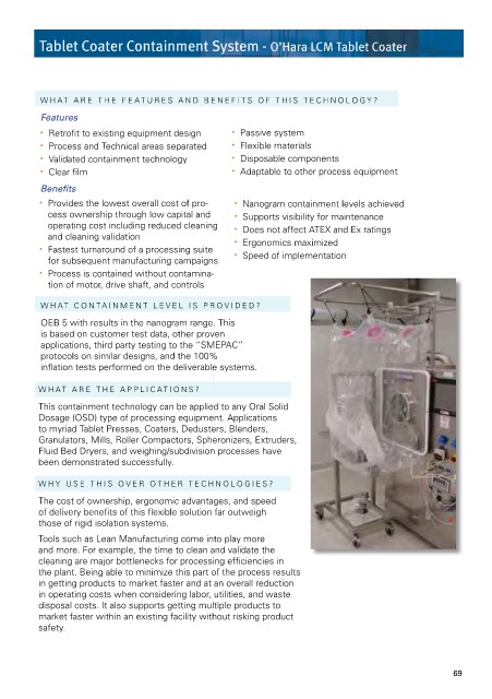 Tablet Coater Containment System - O’Hara LCM Tablet Coater Tablet Coater Containment System - O’Hara LCM Tablet Coater