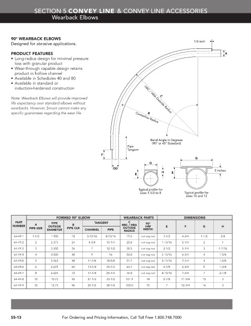 Note: Wearback Elbows will provide improved HRC / HRA Outside Radius