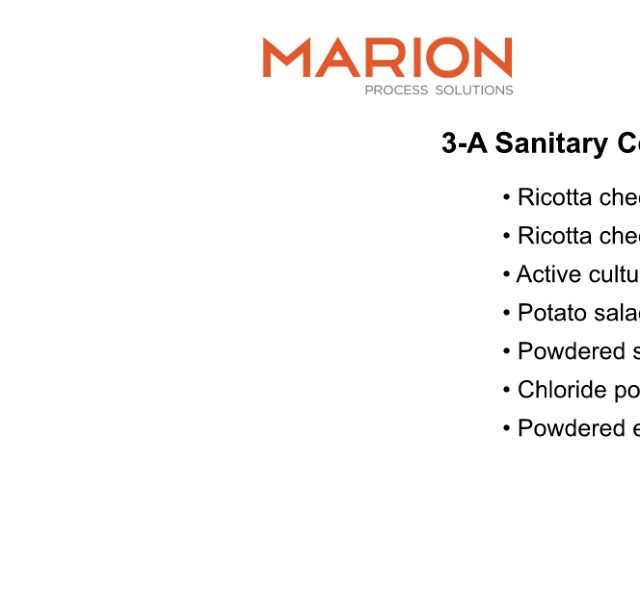 3-A Sanitary Certified Mixers • Ricotta cheese • Ricotta cheese #2 • Active cultures • Potato salad/macaroni salad • Powdered soup • Chloride powders • Powdered eggs