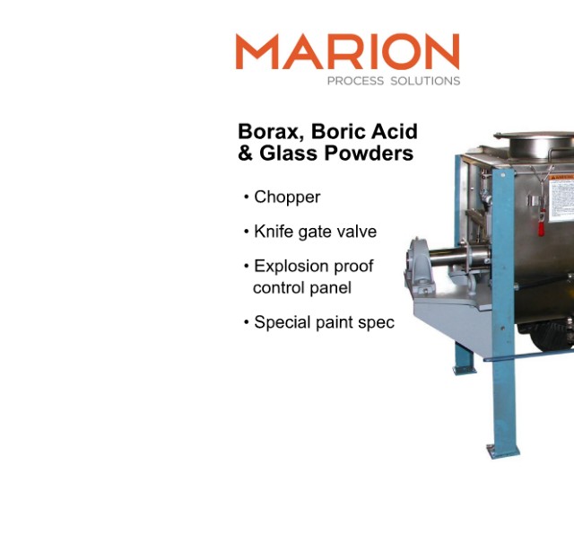 Mineral Borax, Boric Acid & Glass Powders • Chopper • Knife gate valve • Explosion proof control panel • Special paint spec 10011