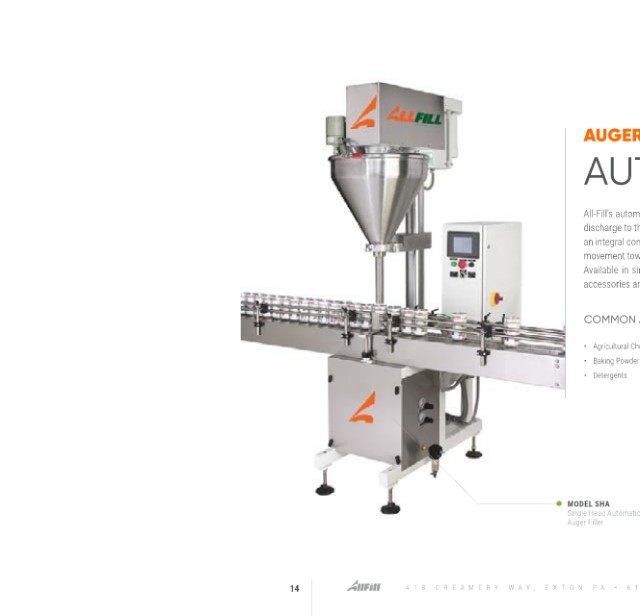 discharge to the next stage in the packaging process. Automatic models combine a standard fill head with
