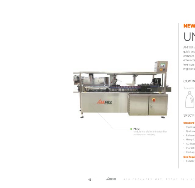 All-Fill Unscramblers are designed and manufactured on a single frame with fixed change parts to ensure