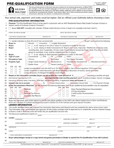 Pre-Qualification Form • Updated: February 2017 • Copyright © 2017 Arizona Association of REALTORS . All rights reserved.