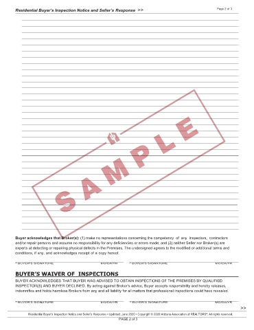 Residential Buyer’s Inspection Notice and Seller’s Response >> Page 2 of 3