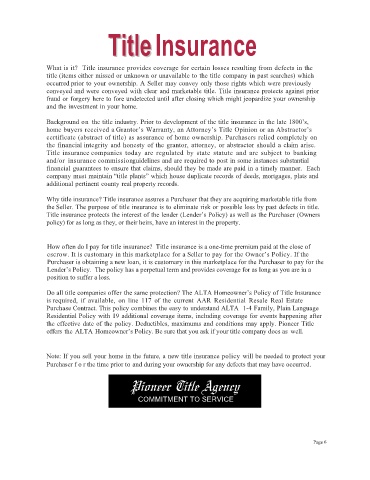 the effective date of the policy. Deductibles, maximums and conditions may apply. Pioneer Title