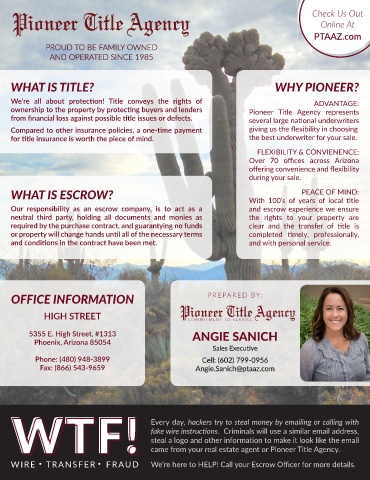 WIRE TRANSFER FRAUD came from your real estate agent or Pioneer Title Agency.