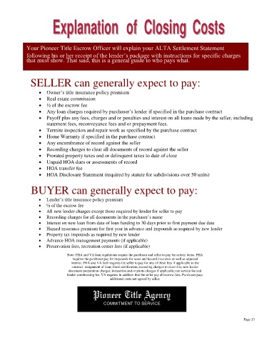 Note: FHA and VA loan regulations require the purchaser and seller to pay for certain items. FHA