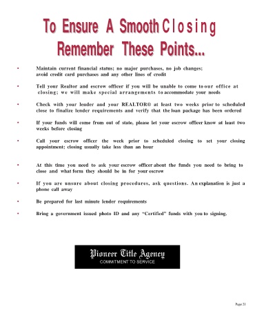 • Tell your Realtor and escrow officer if you will be unable to come to o u r o f f i c e a t