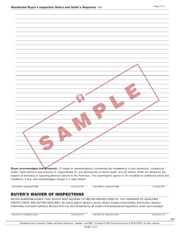 Residential Buyer’s Inspection Notice and Seller’s Response >> Page 2 of 3