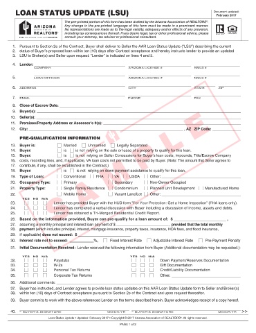 Loan Status Update • Updated: February 2017 • Copyright © 2017 Arizona Association of REALTORS . All rights reserved.