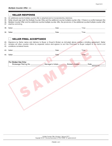 35. Seller should sign both this Multiple Counter Offer and the additional counter/multiple counter offer. If there is a conflict between this