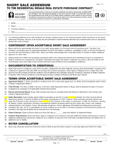 37. additional addendum(a) required by Creditor(s) as a condition of approval of the short sale, provided that Buyer and Seller incur no