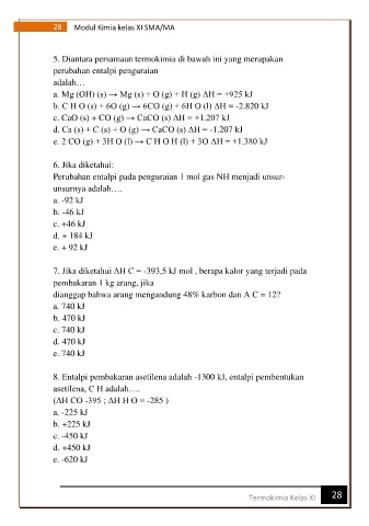 7. Jika diketahui ΔH C = -393,5 kJ mol , berapa kalor yang terjadi pada