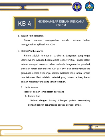 utamanya menyangga beban aksial tekan vertikal. Fungsi kolom