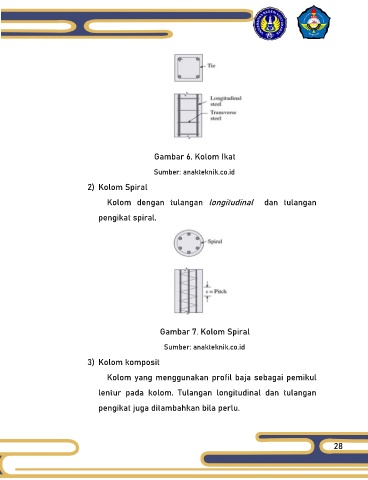 lentur pada kolom. Tulangan longitudinal dan tulangan