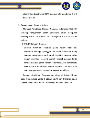 Dengan demikian, Perencanaan dimensi Kolom Utama