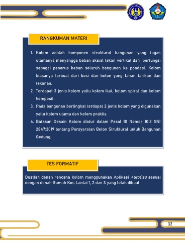 1. Kolom adalah komponen struktural bangunan yang tugas