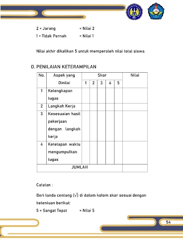 Beri tanda centang (√) di dalam kolom skor sesuai dengan