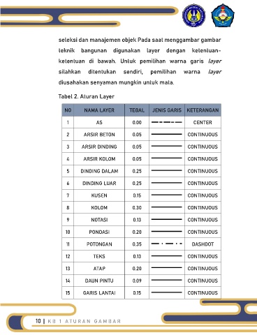 NO NAMA LAYER TEBAL JENIS GARIS KETERANGAN