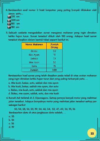5. Sebuah website mengadakan survei mengenai makanan yang ingin dimakan