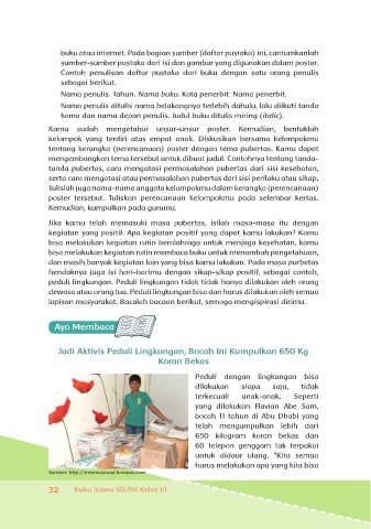 buku atau internet. Pada bagian sumber (daftar pustaka) ini, cantumkanlah