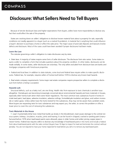 • Real estate company requirements: Some major real estate companies require prospective sellers to complete a disclo- sure form before a listing is accepted.
