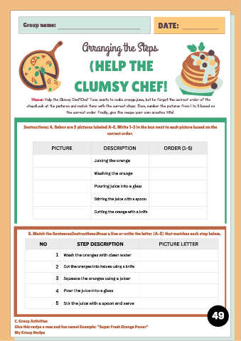 Mission: Help the Clumsy Chef!Chef Tono wants to make orange juice, but he forgot the correct order of the