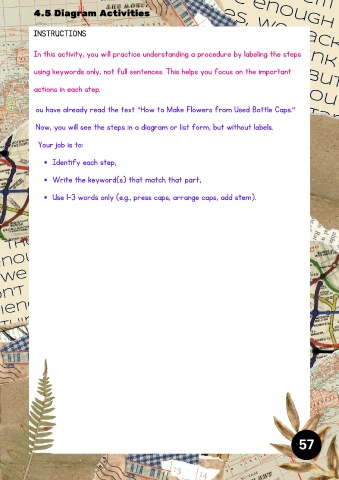 Use 1–3 words only (e.g., press caps, arrange caps, add stem).