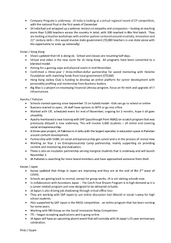 • Company Program is underway. JA India is looking at a virtual regional round of CP competition,